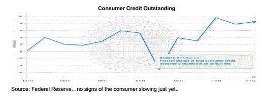 - Consumer credit was up 8.6% in January which indicates an increased confidence in consumer spending.