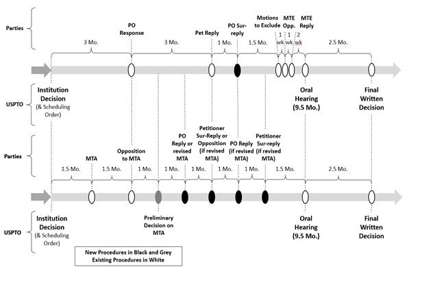 Turning back to the original RFC, there was much for Petitioners and Patent Owners to dislike about it (image below). The top sequence shows the typical AIA trial schedule, the bottom showing the proposed revisions of the RFC.