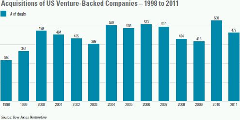 In 2011, the venture capital market produced its heaviest deal flow in a decade, with total proceeds that rivaled the levels of 2007 and 2008, despite lingering economic uncertainty and poor capital market conditions in the late summer and early fall. Liquidity performance was also impressive, with a steady stream of VC-backed IPOs and the highest median acquisition price in VC-backed M&A transactions since the peak of the dot-com boom in 2000.