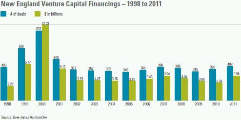 New England companies reported 409 financings in 2011, up 9% from the 376 financings in 2010, while proceeds leapt 41%, from $2.79 billion to $3.94 billion. The number of financings and amount of proceeds were the largest in New England since 2001.