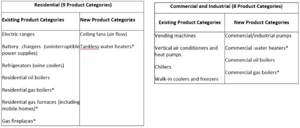 The Energy Efficiency Regulations are intended to reduce greenhouse gas emissions by prescribing energy efficiency standards for energy-using products in Canada's residential, commercial and industrial sectors. Last year, Canada and the United States committed to better align and improve energy efficiency standards, with the goal of reducing trade barriers and achieving climate change goals. The current NRCan notice (which is found in full in the Canada Gazette), aims to address this goal by introducing or updating energy efficiency standards and, where applicable, test methods and associated reporting and compliance requirements for the 17 product categories listed below. The plan is to align 11 of the 17 product categories with energy efficiency standards in force or expected to be in force in the United States. For the remaining six product categories (those shown with an asterisk), NRCan will consider more stringent standards.
