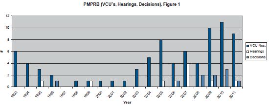 In recent years, the PMPRB focused on resolving old matters with no new hearings since 2009, and no new notice of hearings issued in 2011. The trend has been that a growing number of issues are resolved by Voluntary Compliance Undertaking (VCU); effectively, a form of settlement (see Figure 1).