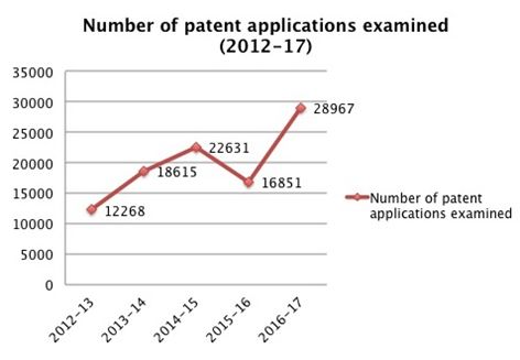 There has been 136.1% increase in the number of applications filed in the Patent Office probably because of the drastic increase in the recruitment of Examiners by the Office. In 2016, the Department of Industrial Policy and Promotion ("DIPP")recruited 458 patent examiners. From 12,268 applications examined in 2012-13, the numbers went up to 28,967 in 2016-17.