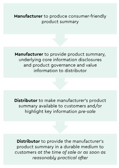A key change in the final rules is that distributors will not be required to assess whether the product summary is likely to meet the information needs of the retail investors to whom they are distributing (and potentially prepare their own revised version). Instead, they must simply make use of the (unamended) product summary provided by the manufacturer (although there are a suite of provisions regarding identifying and acting on concerns, for example where they consider the product summary to be misleading in a material way).