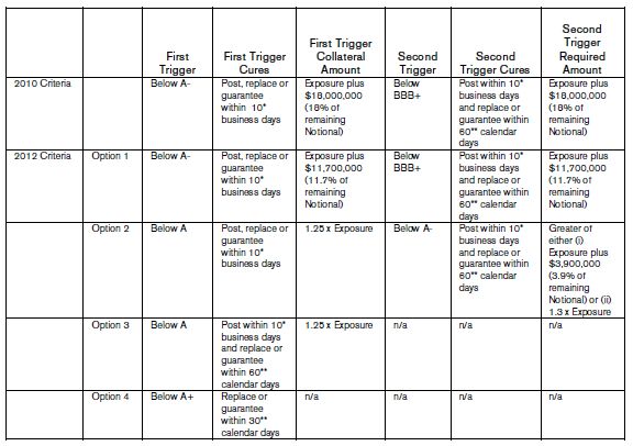 As the above table reflects, the 2012 Criteria offer a Swap Counterparty much better optionality in terms of managing the impact of its own S&P rating.