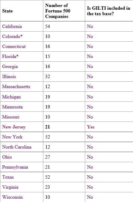 Most states with a high concentration of Fortune 500 companies don't tax GILTI.
