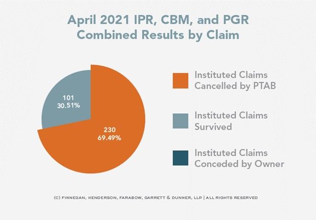 More detailed cumulative statistics on the Board's IPR, CBM, and PGR decisions, updated through May 31, 2021, are available here on the At the PTAB Blog.