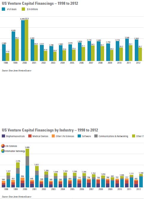 Despite lingering economic uncertainty for much of the year, in 2012 the venture capital market produced the second-strongest deal flow since the end of the dot-com boom in 2001, although financing proceeds declined from 2011 levels. Liquidity performance in 2012 was also mixed, as the number of VC-backed IPOs increased from the 2011 total, while the number of acquisitions of VC-backed companies and their acquisition prices declined from the prior year's levels.
