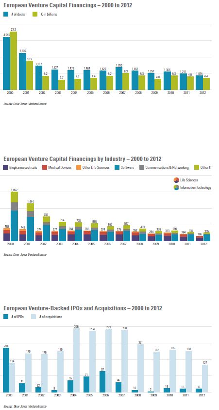 Exciting new venture-backed companies should continue to emerge in Europe. Negative economic growth is forecast for 2013, however, and austerity measures are wearing thin on voters, leading to political uncertainty in some countries. Taken together, these factors suggest that challenging conditions in the European venture capital market are likely to persist for at least the next year.