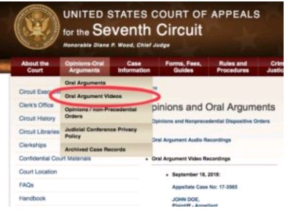 Those who follow the workings of the U.S. Court of Appeals for the Seventh Circuit are no doubt accustomed to visiting the court's website (http://www.ca7.uscourts.gov) to read the daily release of published opinions or to listen to the court's audio recordings of oral arguments. The former are available here; the latter are available here and normally are posted in the afternoon, a few hours after that morning's oral arguments.