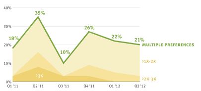 Overall Barometer results have trended modestly upward in comparison to 2009/2010 levels, with the four quarter moving average as of Q2 of 2012 rising to 21%. (For an explanation of how the Barometer is calculated, see "Notes on Methodology" at the end of this survey.)