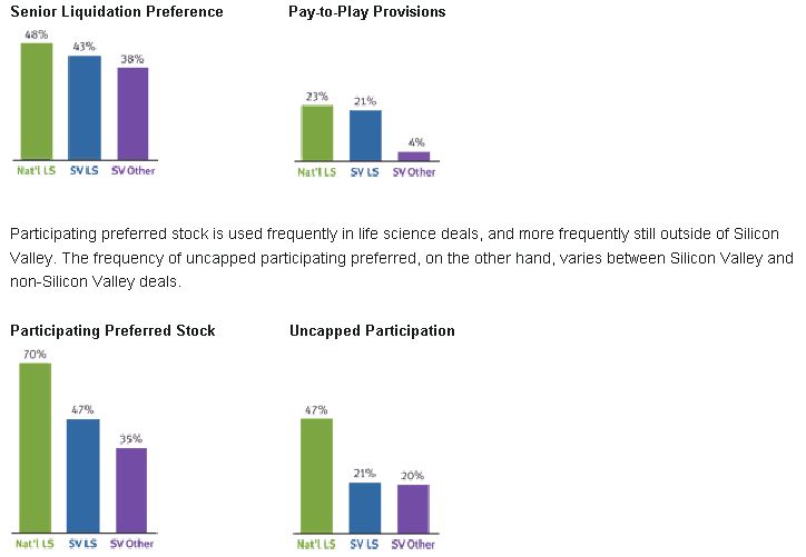 - In addition, life science financings during the first half of 2012 were significantly more likely to involve senior liquidation preferences, participation rights and "pay-to-play" provisions, in comparison to other industries covered by our Silicon Valley survey.