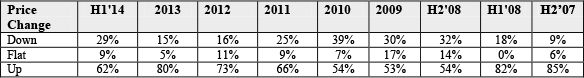 Price Change —The financings closed in H12014 and in the periods covered by our previous surveys may be broken down by the directions of the change in price as compared to each company's respective previous round, as follows: