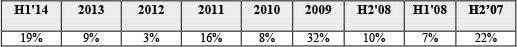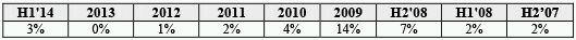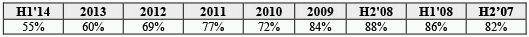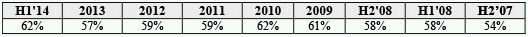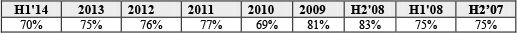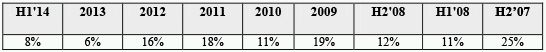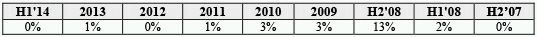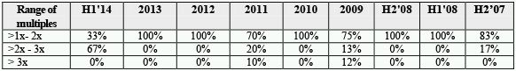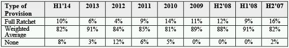 Anti-dilution Provisions —The use of anti-dilution provisions in the financings which took place in H1 2014 and in the periods covered by our previous surveys may be broken down as follows: